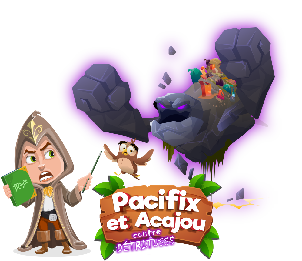 Pacifix et Acajou, venez nous aider à vaincre Détrituss qui ne cesse de polluer notre forêt.