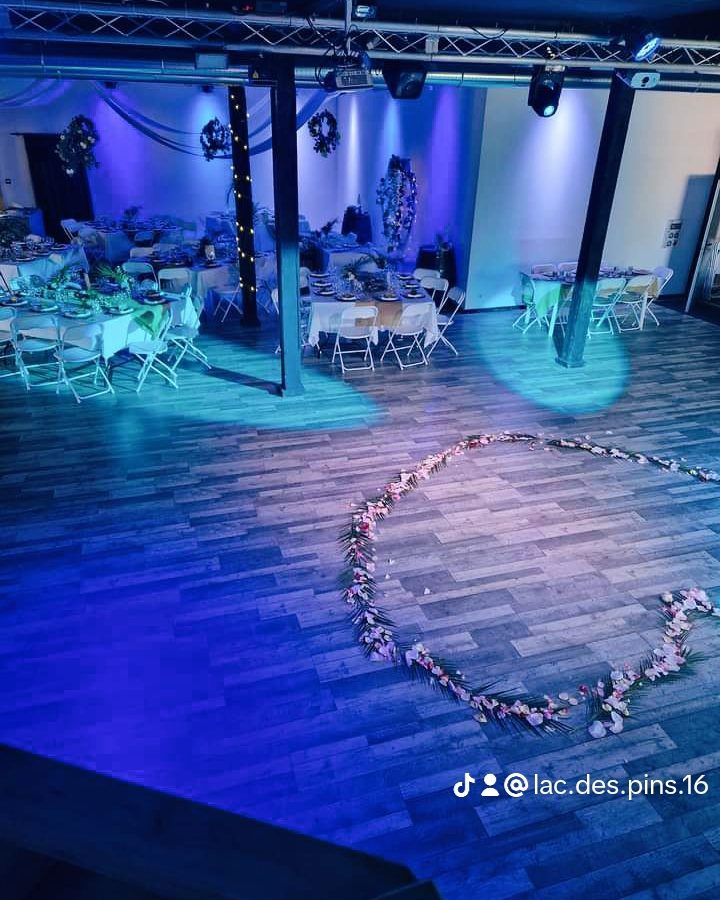Location comprenant une salle (environ 300m²) entièrement équipée et climatisée, des terrasses, des couchages et un espace balnéo (spa, bain nordique extérieur et sauna), le tout sur un grand terrain clos de 7000 m².
