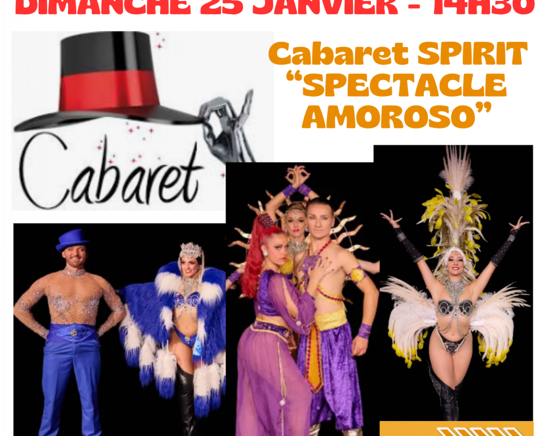 Le 24 janvier 2026 À partir de 25 € Distractions et loisirs Espace Matisse, 16800 Soyaux Ajouter à mon Agenda Google La troupe de cabaret Spirit vous présente leur nouveau spectacle : Amoroso. Date Samedi 24 janvier 2026 à partir de 20h30. Dimanche 25 janvier 2026 à partir de 14h30. Tarifs Tarif Adulte Du 24 janvier 2026 au 25 janvier 2026 maximum 25 € Sur réservation.