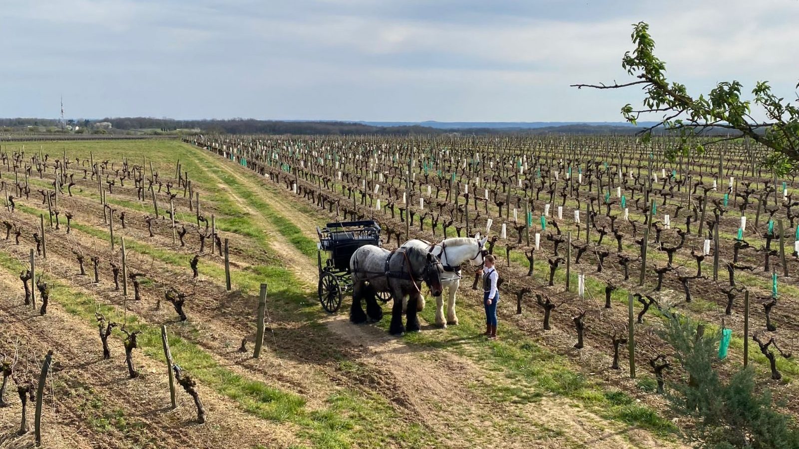 Au rythme placide du cheval au pas, découvrez les richesses du paysage viticole charentais grâce à nos promenade hippomobiles oenotouristiques.