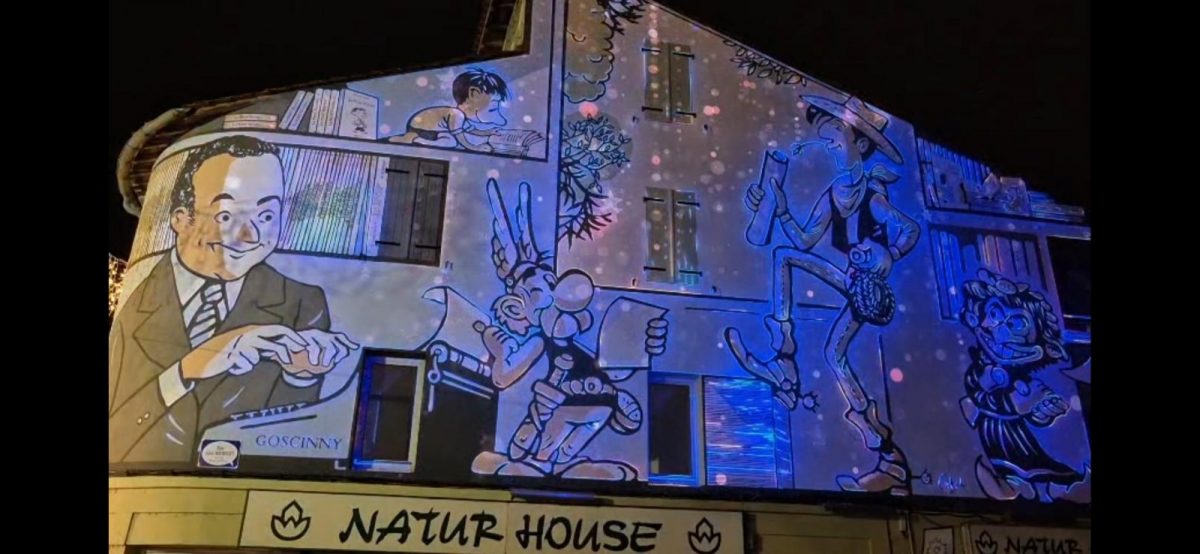 Projeté dans la cour de l’Hôtel de Ville jusqu’au mur peint Goscinny avec une projection donnant vie à la fresque et aux personnages. Le palais de justice s’illumine quant à lui de mille feux, la façade du Crédit Agricole du Champ de Mars accueille la création d’une illustratrice locale, tandis que la place Bouillaud retrouve ses « Brothers and Sisters », réalisés par des enfants du monde, dont six des écoles d’Angoulême, en partenariat avec la CIBDI.