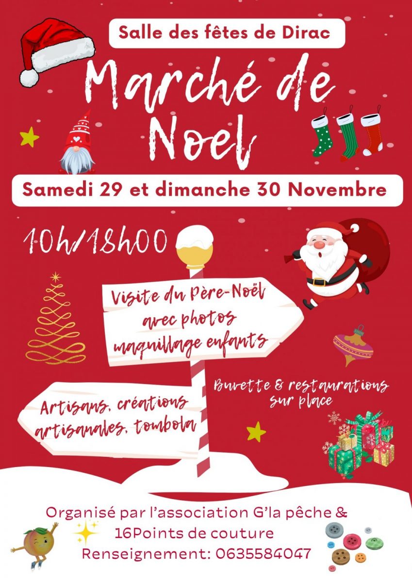 L’Atelier 16 Points de Couture en partenariat avec G’la Pêche (association sportive de Dirac) organise le premier Marché de Noël de Dirac à la salle des fêtes !