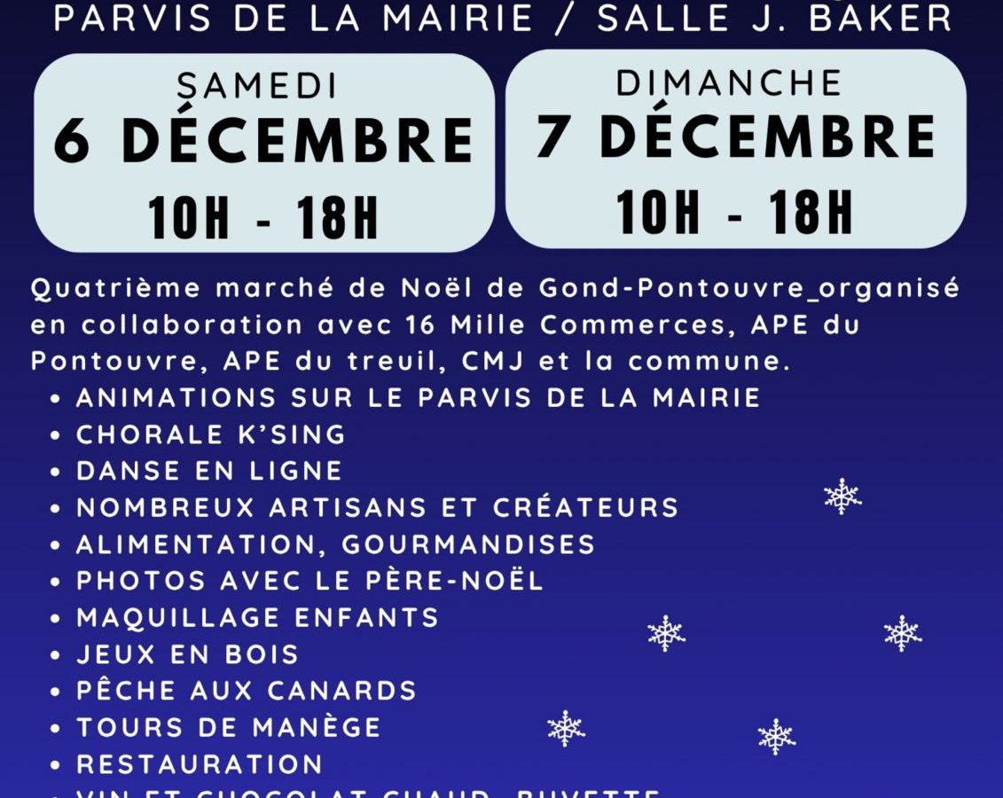 4ème édition du marché de Noël de Gond Pontouvre organisé en collaboration avec les APE des Ecoles du Pontouvre et du Treuil.