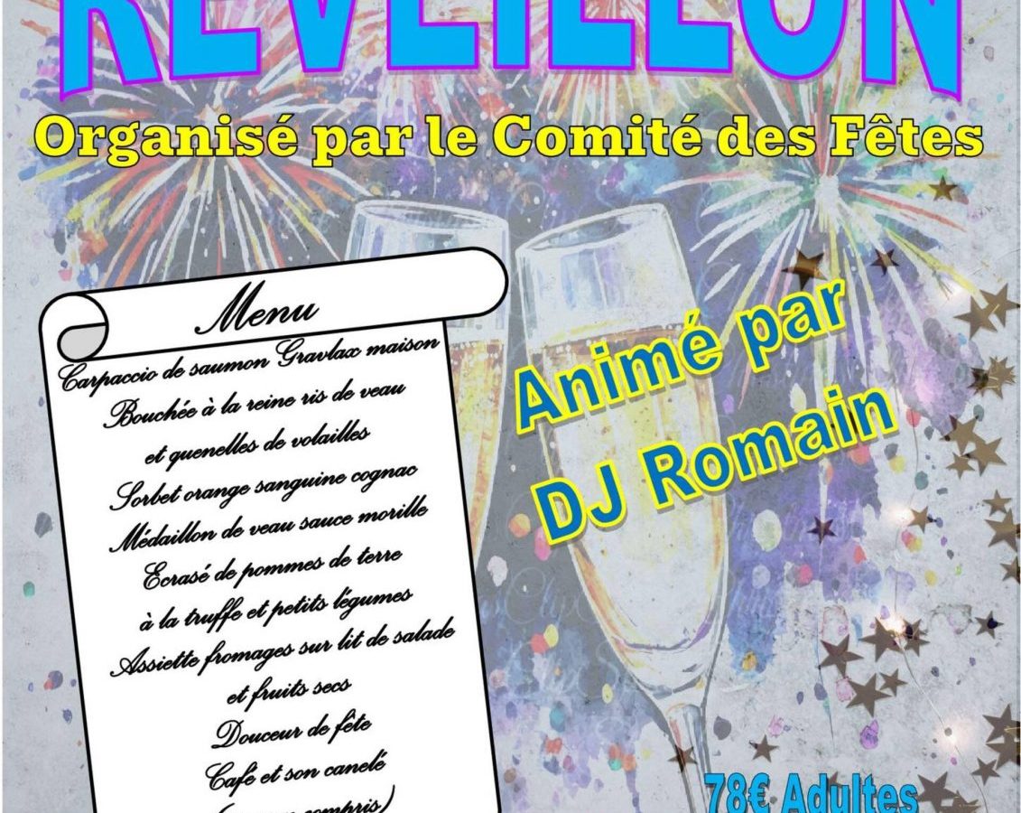 Rendez-vous pour notre deuxième réveillon du Comité des Fêtes. Un délicieux repas préparé par Les Tontons de Bordeaux et une ambiance de folie avec DJ Romain, qui nous fera danser jusqu’au décompte de la nouvelle année 2026.