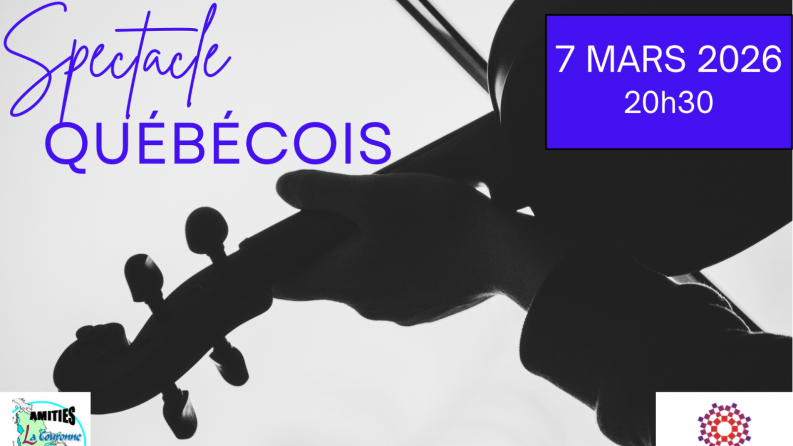 Le 07 mars 2026 Gratuit Culture Salle des fêtes, 16400 La Couronne Ajouter à mon Agenda Google L’Association Le Québec Autrement vous invite à découvrir un spectacle québécois. Venez profiter d’un moment convivial et artistique pour voyager au cœur de la culture québécoise ! Date Samedi 7 mars 2026 à partir de 20h30.