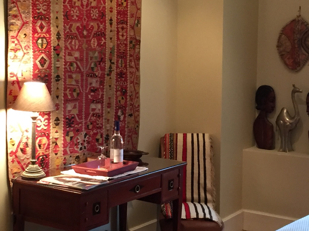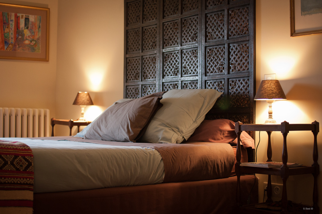 Aux inspirations d’ailleurs, cette chambre de 22m2 donne sur la cour d’honneur : TV, douche à l’italienne et WC.