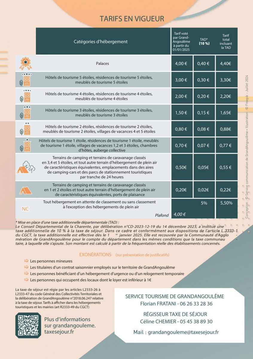 Pour rappel, la taxe de séjour a été uniformisée aux mêmes montants sur toutes les communes de GrandAngoulême puis suite à des délibérations du Conseil communautaire.