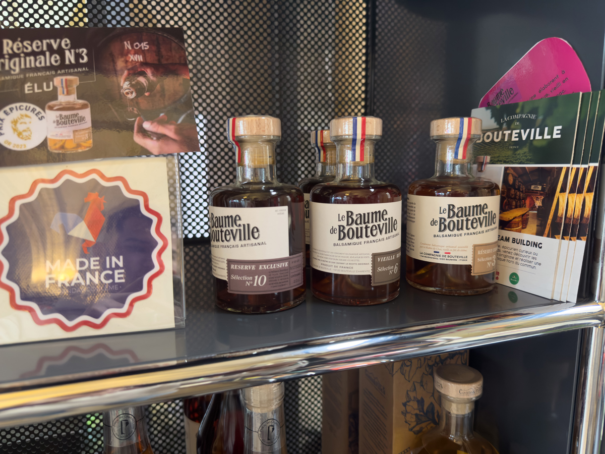 Vous retrouvez des produits issus du savoir-faire traditionnel local comme le fameux Baume de Bouteville ; mais aussi de délicieux miels, des confitures artisanales ou encore de l’huile de noix. Une boutique charentaise ne saurait être complète sans quelques fleurons de la production de cognac ; ou encore de pineau des Charentes ou de Vin Charentais. Les bières brassées ici seront de belles découvertes. Il est également probable que les amateurs du sans alcool se ruent sur les tisanes et les pétillants.