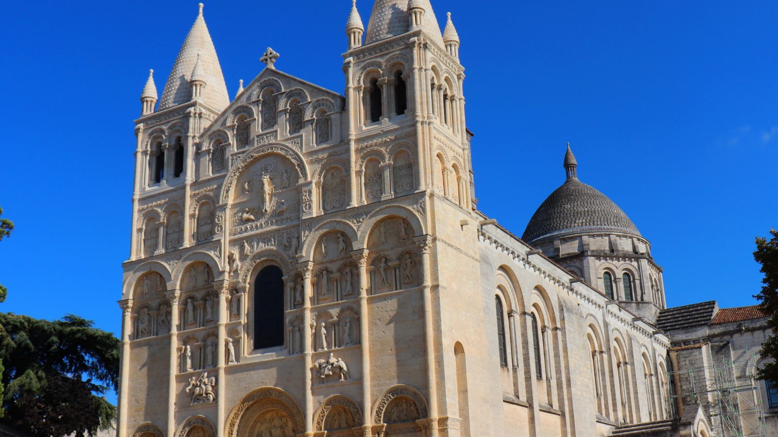 Haute d’une vingtaine de mètres, la façade écran à arcatures, mettant en scène plusieurs dizaines de personnages sculptés, constitue un chef-d’œuvre de l’art roman du Sud-Ouest. Comme un clin d’œil à l’Angoulême d’aujourd’hui, Cité internationale de la Bande-dessinée et de l’Image, elle évoque un grand livre illustré où des personnages cernés d’arcades forment les prémices d’une toute première bande-dessinée !