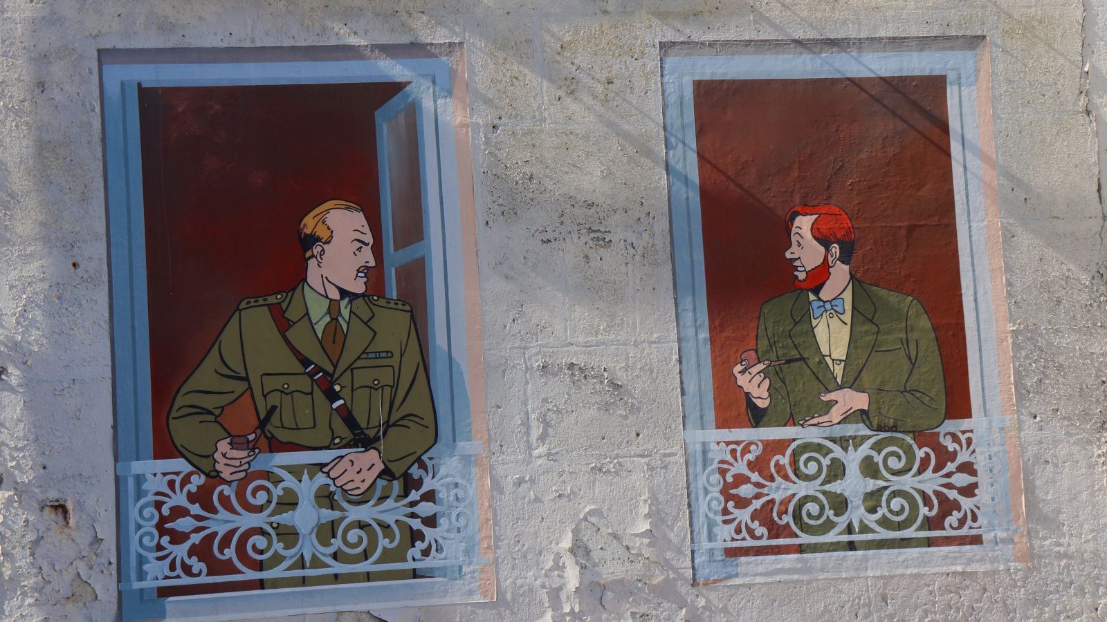 Ce mur peint est signé par Yves Sente (scénariste) et André Juillard (dessinateur) qui ont réalisé ensemble 5 des aventures de Blake et Mortimer.