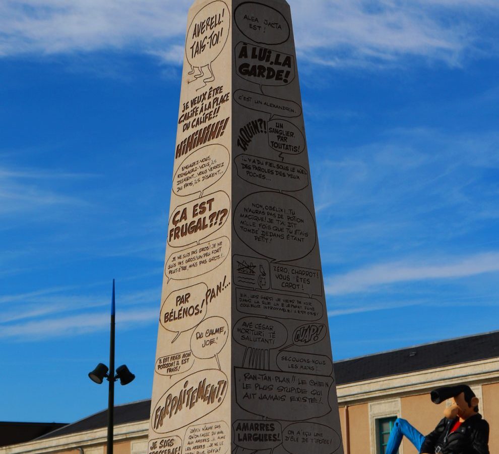 Cet obélisque BD a été créé pour rendre hommage à René Goscinny, scénariste d’Astérix. Il a été rejoint par le menhir érigé en hommage au dessinateur Uderzo co-auteur des aventures du petit Gaulois.